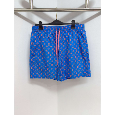 Louis Vuitton 2025 Monogram Glow Blue Beach Shorts|Stylish LV Swim Shorts with Orange Accents|Trendy Louis Vuitton Nylon Beach Shorts|Luxury Blue LV Swimwear with Drawstring|Designer Louis Vuitton Monogram Shorts for Summer