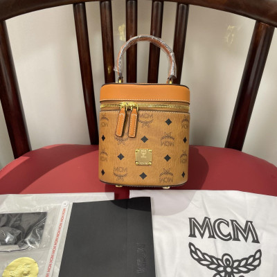 MCM Fortune Bucket Bag|Classic Geometric Design with Dual Zipper Closure|Spacious Fabric Lined Interior|Top Leather Handle for Easy Carry|Includes Detachable Crossbody Strap|Perfect for Storing Valuables