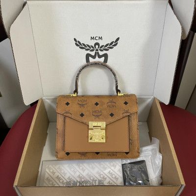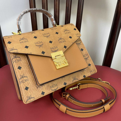 MCM New Classic Accordion Bag|Stylish and Unique MCM Accordion Bag with Detachable Strap|MCM Classic Laurel Leaf Lock Front Flap Bag|Spacious MCM Bag with Three Compartments|Versatile MCM Handbag for Everyday Use