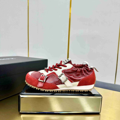 SUGARSU Ballet Training Shoes with Playful Tilted Toe Design|Retro and Youthful Color Block Style|Four Color Options Available|Eye-Catching Buckle Accents on the Side|Trendy Wave Line Design for a Fashionable Look