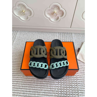 Hermès Pig Nose Chain Sandals for Couples|Luxury Hermès Pig Nose Sandals with Chain Detail|Top Quality Hermès Pig Nose Sandals for Men and Women|Hermès Pig Nose Sandals with Calfskin Insole|Stylish Hermès Pig Nose Sandals with Leather Craftsmanship