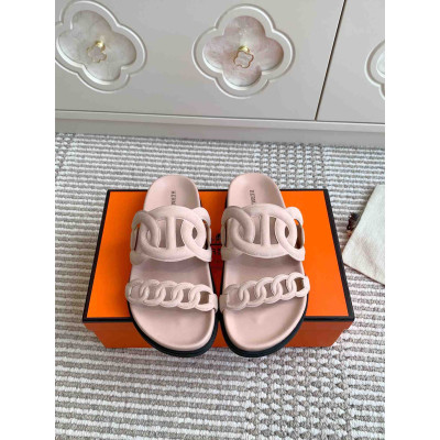 Hermès Pig Nose Chain Sandals for Couples|Luxury Hermès Pig Nose Design Chain Sandals|Top Quality Hermès Pig Nose Sandals with Leather Sole|Hermès Pig Nose Sandals with Imported Calfskin|Stylish Hermès Pig Nose Sandals for Men and Women