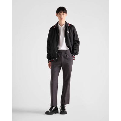 Prada 三角皮牌工装裤 2024春夏新款 做旧水洗工艺 真牛皮装饰 Prada宽松版型男士工装裤 Prada高端休闲裤 意大利制造 Prada男士潮流裤装