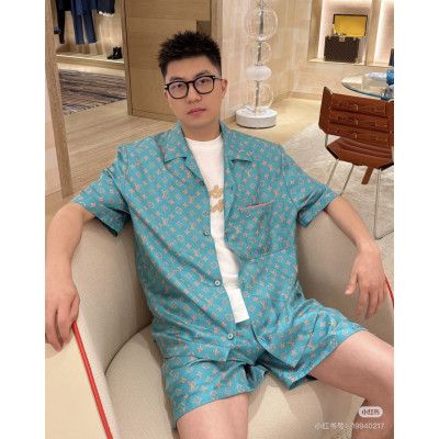 Louis Vuitton 2025春夏新款蓝色真丝印花短袖衬衫 男士奢侈品商务休闲衬衫 Louis Vuitton真丝翻领衬衫 艺术印花设计 透气舒适短袖上衣 正品保障 Louis Vuitton最新系列衬衫