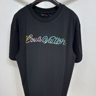 Louis Vuitton 25烫钻签名T恤 经典Monogram花朵刺绣 男士宽松短袖 珍珠徽标装饰 路易威登烫钻签名设计 Louis Vuitton 2024春夏新款 潮流烫钻T恤 奢侈品牌签名款 多尺码可选 M-3XL Louis Vuitton烫钻系列