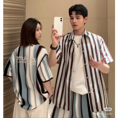 Louis Vuitton 25珍珠扣Monogram棉丝衬衫 酒红条纹航海风短袖 男士奢侈品衬衫 Louis Vuitton 2024春夏系列 珍珠母贝扣设计 棉丝混纺透气面料 S-XL尺码 Louis Vuitton航海主题衬衫 游轮美学灵感