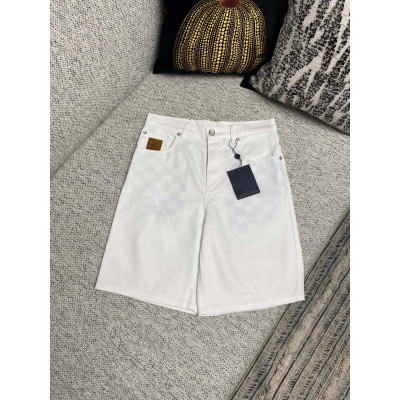 Louis Vuitton 25SS新款牛仔短裤 日式丹宁布夏季清爽短裤 LV字母明线后袋设计 Louis Vuitton正绒面革贴饰Damier印花 珠光纽扣铆钉细节 29/30/31/32码 Louis Vuitton男士潮流休闲短裤