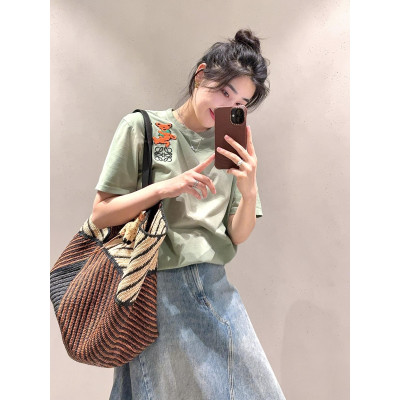 LOEWE罗意威25SS新款棉质T恤 经典圆领常规版型 双色Anagram刺绣短袖 LOEWE罗意威男女同款休闲上衣 春夏轻薄透气棉tee S/M/L/XL多码可选 LOEWE罗意威正品刺绣工艺潮牌T恤