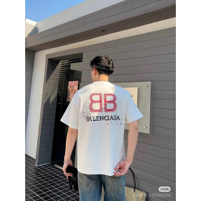 Balenciaga 25 Spring/Summer New Short Sleeve with Back BB Letters|Imported Graffiti Print Short Sleeve|Luxury Details for Dating|Super Stylish and Eye-Catching|Must-Have for Fashion Lovers