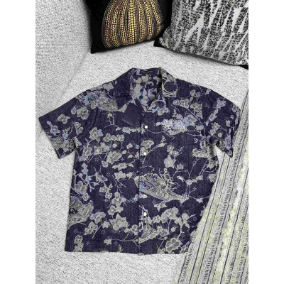 Louis Vuitton 24SS Summer New Denim Short Sleeve Shirt|LV Waves Jacquard Weaving Highlights Tropical Surf Theme|Exotic LV Flower Embroidery Adds Unique Charm|Pearlescent Buttons for a Distinctive Touch|Perfectly Paired with Matching Shorts for a Stunning Summer Look