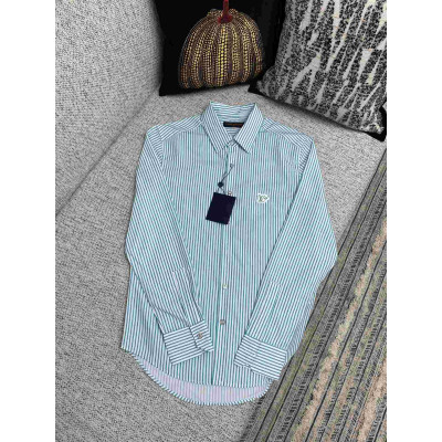 Louis Vuitton 25SS New Cotton Long Sleeve Shirt with Monogram Jacquard|Stylish Striped Print LV Shirt for Layering|LV Flower Rubber Embellishment Shirt|Luxury Brand Striped Shirt for Men|Trendy Monogram Long Sleeve Shirt by Louis Vuitton