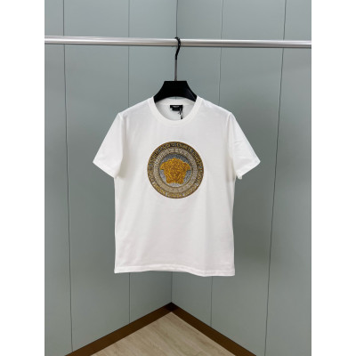 Versace Embroidered Medusa Crystal Cotton T-Shirt|Luxury Versace Medusa Crystal Embroidered Tee|Exclusive Versace Custom Import Crystal T-Shirt|High-End Versace Embroidered Short Sleeve Tee|Stylish Versace Medusa Crystal T-Shirt ZG Latest Sync