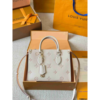 Louis Vuitton New Light Cream Strawberry OnTheGo Tote Bag|Stylish LV Tote Bag with New Colorway|Perfect Tote Bag for Sweet Girls|Comes with Attachable Charm|Can be Handheld, Shoulder, or Crossbody|25cm with Box
