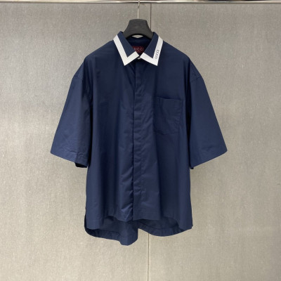 Gucci 25 Spring/Summer New Arrival🌟Color Block Collar Letter Print Logo 3D Pocket Short Sleeve Shirt🔥Sizes 39,40,41,42|Stylish Gucci Short Sleeve Shirt with Logo Print for Men|Trendy Color Block Shirt by Gucci for Summer|Gucci Men's Casual Shirt with 3D Pocket Design|Exclusive Gucci Spring/Summer Collection Shirt
