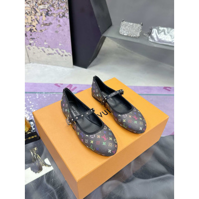 Louis Vuitton x Takashi Murakami Mary Jane Flats|The Most Popular Spring/Summer Runway Item|Worn by Top Models|Versatile and Stylish|Handcrafted with Genuine Leather|LV Colorful Monogram